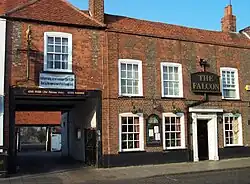 By 1854,[41] the village's old coaching inns had either closed down or become ordinary inns and pubs. The survivors were: the White Hart, on the eastern outskirts, at Pincents Lane, and demolished in 1969; the Bull; the Falcon; the Castle and the Crown. The Castle vanished in 1907.[42] In 1939, only the Crown was offering accommodation. On the other hand, the village then had the Railway Arms next to the station, since demolished; the Bridge House Inn, next to the canal, now closed and, on Church Street, the Red Lion, closed 2014; the Lamb, closed 2012 and the Volunteer.