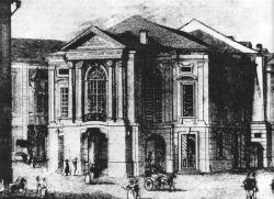 Prague's first standing public theatre, the Sporck Theatre, operated from 1724 to 1735. The owner of this theatre, Count Franz Anton von Sporck, permitted the free use of it to subsidize the commercial venture of the Venetian impresario Antonio Denzio.[1] The next commercial theatre, the "Kotzentheater" or Divadlo v Kotcích, operated sporadically from 1739 to 1783 under a series of Italian impresarios. The final closure of the "Kotzentheater" coincided with the opening of Count Nostitz's "Nostitzsches Nationaltheater." The theatre opened in 1783 with a performance of the tragedy Emilia Galotti by the German playwright Gotthold Ephraim Lessing. The building itself was constructed in a Neoclassical style and remains one of the few European theatres to be preserved in its almost original state to the present day. Its motto, Patriae et Musis "To the Native Land and the Muses"), which is inscribed above the portal, should also be noted as reflecting the original intentions of its creator.