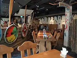 - Fritz's Railroad Restaurant – A railroad-themed restaurant where customers order by placing calls to the kitchen and their food is delivered to the table by overhead train.[35]