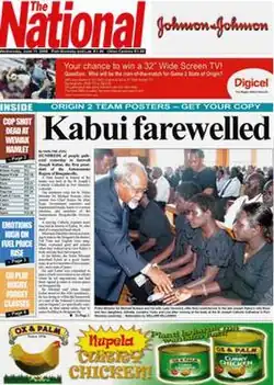 ![]() Front page of The National on June 11, 2008. The main headline is the funeral ceremony for Joseph Kabui. | |