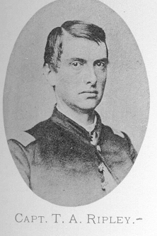 Theodore Alexander Ripley was born on December 23, 1835. Prior to the war, Ripley was a merchant at New York City and married Harriet Sophia Fulham on July 9, 1857.[1]