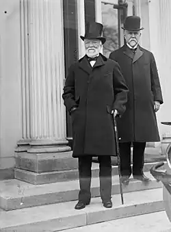 Gilman wrote about his experiences with Congress with deep disillusionment. He blamed their paralysis on "the political machine," in other words party politics. He called it an "invisible government....They elude responsibility, for they have no corporate existence. They are open to corrupt deals, and in fact are a kind of clearing house for secret and underhanded arrangements between all parties."[28] Gilman's disillusion drove him into the Progressive Party. He campaigned openly for Theodore Roosevelt's third-party presidential bid in 1912. He continued campaigning for his ideas, even extending the Federal Reserve concept to Europe (anticipating the European Central Bank), which he hoped would be "a perfect protection against war."[29]