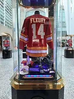 Fleury played four exhibition games, scoring four points, before being released by the Flames. General Manager Darryl Sutter expressed his pride in Fleury's attempt and commended his effort, but decided he was not one of the top six wingers in camp, which Sutter and Fleury had agreed was a condition of the tryout continuing.[116] On September 28, 2009, Fleury announced his retirement at a news conference at the Saddledome. He thanked the Flames for allowing him to attempt the comeback, and expressed satisfaction at how his career ended. "I get to retire a Calgary Flame. I HAD to retire a Calgary Flame. It's been a long journey. It's time to put down some roots. And there's no better place than here," said Fleury of his decision not to seek an offer from another team.[117]