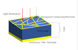 Transparent conducting electrodes are essential components of solar cells. It is either a continuous film of indium tin oxide or a conducting wire network, in which wires are charge collectors while voids between wires are transparent for light. An optimum density of wire network is essential for the maximum solar cell performance as higher wire density blocks the light transmittance while lower wire density leads to high recombination losses due to more distance traveled by the charge carriers.[10]