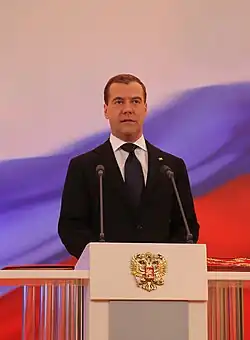 The first speech was made by the outgoing President Dmitry Medvedev:[2][3]