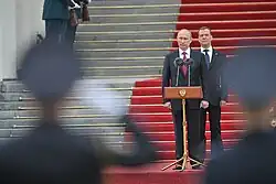 Vladimir Putin delivered his speech as President of Russia:[5]