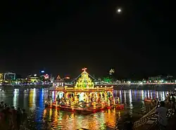 The 10-day Panguni Brahmotsavam, a series of procession events of the Kapaleeshwarar temple and related shrines around the temple during the Tamil month of Panguni (March–April), is the most important annual event of the neighbourhood. People from around the country and abroad participate in the events.[28] The main deities of the Kapaleeshwarar temple, including Shiva, Parvathi, and Nandhi taken on a 13-meter-tall chariot,[29] led by Vinayakar chariot and followed by the attendant pantheon of nayanmars (Shaivite saints) in a series of palanquins and other deities of the surrounding shrines including Mundagakanni Amman, Kolavizhi Amman, Vasuki with Valluvar, Draupadi Amman, Ankalaparameshwari Amman, Vairamudi Swami, and Chintadripet Muthukumaran are taken in procession.[29][30][31] The Arubathimoovar on day eight draws the maximum crowd during which the 63 nayanmars along with the idol of philosopher-saint Valluvar as the 64th nayanmar are taken in procession.[28][30][32][33] The festival is dated back to 7th century CE.[34]