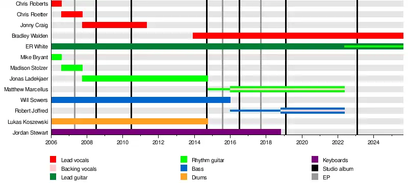 Upon the band's formation, they released one extended play (EP) in 2007, titled This Is Your Way Out, and shortly after, the group underwent significant line-up and sound changes, dropping their metalcore influence and leaning towards a more rock sound.[1][2] The band released their debut studio album, Relativity (2008), which featured vocalist Jonny Craig and rhythm guitarist Jonas Ladekjaer. Their eponymous second studio album was released in June 2010, to critical acclaim, and was Craig's final album with the group.