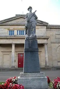 The Ashe Memorial Hall in Tralee, County Kerry was named after him.[31] The words "Halla Tomáis Ághas" are embossed on the front of the building. Nearby Ashe Street (formerly Nelson Street) is also named for him.[32]