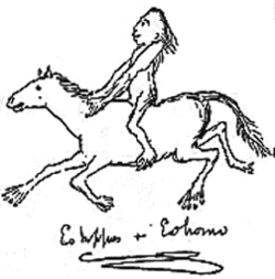Apart from his interest in persuading the world that man was a primate and had descended from the same stock as the apes, Huxley did little work on mammals, with one exception. On his tour of America Huxley was shown the remarkable series of fossil horses, discovered by Othniel Charles Marsh, in Yale University's Peabody Museum.[45][46] An Easterner, Marsh was America's first professor of palaeontology, but also one who had come west into hostile Indian territory in search of fossils, hunted buffalo, and met Red Cloud (in 1874).[47](pp 52, 141–160) Funded by his uncle George Peabody, Marsh had made some remarkable discoveries: the huge Cretaceous aquatic bird Hesperornis, and the dinosaur footprints along the Connecticut River were worth the trip by themselves, but the horse fossils were really special. After a week with Marsh and his fossils, Huxley wrote excitedly, "The collection of fossils is the most wonderful thing I ever saw."[47](p 203)