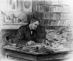 Following a lecture at the Royal Institution on 30 April 1852 Huxley indicated that it remained difficult to earn a living as a scientist alone. This was demonstrated in a letter written on 3 May 1852, where he states "Science in England does everything—but PAY. You may earn praise but not pudding".[23] However, Huxley effectively resigned from the navy by refusing to return to active service, and in July 1854 he became professor of natural history at the Royal School of Mines and naturalist to the British Geological Survey in the following year. In addition, he was Fullerian Professor at the Royal Institution 1855–1858 and 1865–1867; Hunterian Professor at the Royal College of Surgeons 1863–1869; president of the British Association for the Advancement of Science 1869–1870; president of the Quekett Microscopical Club 1878; president of the Royal Society 1883–1885; Inspector of Fisheries 1881–1885; and president of the Marine Biological Association 1884–1890.[13] He was elected as a member to the American Philosophical Society in 1869.[24]