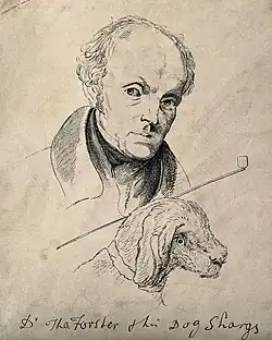 ![]() Etching of Forster with his dog Shargs | |