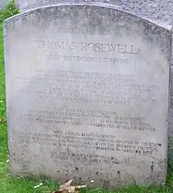 Here is buried THOMAS ROSEWELL a most distinguished divine.