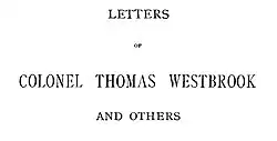 - ^ "Letters of Colonel Westbrook". Boston, Mass., Littlefield. 1901.