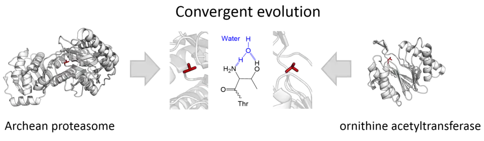 Threonine proteases are a family of proteolytic enzymes harbouring a threonine (Thr) residue within the active site. The prototype members of this class of enzymes are the catalytic subunits of the proteasome, however, the acyltransferases convergently evolved the same active site geometry and mechanism.