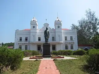 The Thrissur Town Hall is a museum building situated in Thrissur city, Kerala state, India. It was constructed during the Dewanship of RK Shanmughom Chetti and contains the Archaeological Museum and Picture Gallery, where mural paintings from all parts of the Kerala are copied and exhibited. The must see in this museum is the collection of the old manuscripts, written on palm leaves and called olagrandhangal.[1][2] The Town Hall was built in honour of the then Emperor of India, King George, for his silver jubilee. The architecture is in the Victorian style with a lawn and garden in front.