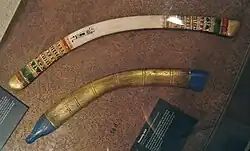 The ancient Egyptians used throwing sticks to hunt small game and waterfowl, as seen in several wall paintings. The 18th-dynasty pharaoh Tutankhamun was a known lover of duck hunting and used the throwing stick in his hunts, and a number of throwing sticks were found in the tombs of pharaohs. Menceys, the kings of the ancient Guanches of the Canary Islands, also used throwing batons. Gimel, the third letter of many Semitic alphabets, may have been named after a weapon that was either a staff sling or a throwing stick, ultimately deriving from a Proto-Sinaitic glyph based on an Egyptian hieroglyph.