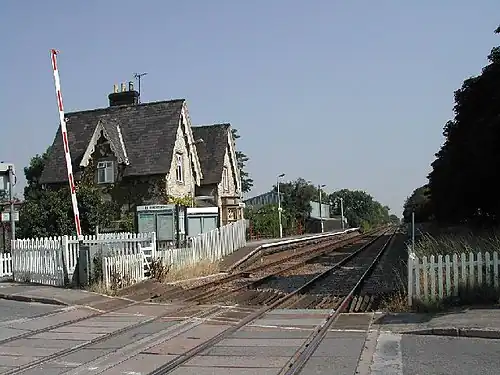 It is on the Nottingham to Lincoln Line, which was engineered by George Stephenson and opened by the Midland Railway on 3 August 1846.[2] The contractors for the line were Craven and Son of Newark and Nottingham;[2] the station buildings are in the neo-Tudor style[3] and were probably designed by Thomas Chambers Hine.