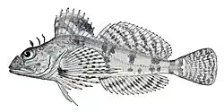 The sponge sculpin (Thyriscus anoplus) is a species of marine ray-finned fish belonging to the family Cottidae, the typical sculpins. It is the only species in the monospecific genus Thyriscus. This fish is found in the northern Pacific Ocean where it is found at depths from 100 to 800 m (330 to 2,620 ft) though usually in the range of 300 to 400 m (980 to 1,310 ft). This species grows to a maximum published total length of 14.5 cm (5.7 in).[1]