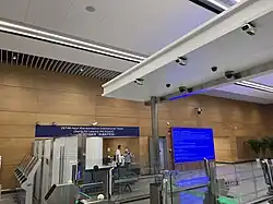 Terminal 2 serves domestic flights while Terminal 1 serves mostly international flights, though it also serves some domestic flights.[12] The domestic section of Terminal 1 is connected to Terminal 2 via an Innovia automated people mover (APM) for transferring passengers arriving on international flights with domestic connections.[13][14]