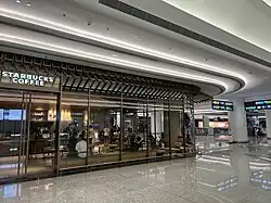 In January 2015, the State Council and Central Military Commission approved the new airport project,[5] and the official name Chengdu Tianfu International Airport (Chinese: 成都天府国际机场) was finalized by the Civil Aviation Administration of China in September 2015.[6][5] In January 2021, flight testing was done[7][8] and on 27 June 2021, the first commercial flight departed from the airport.[9] On the same day, Terminal 2 officially entered service.[10][11]