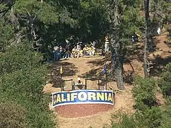 Tightwad Hill is so named as it affords a free view of the stadium's field, allowing fans of the Golden Bears to see the game for free.[1][2] The hill usually has its occupants, even when the stadium sports empty seats. Tightwad Hill is part of Charter Hill, the area behind campus that also encompasses the Big "C", a large concrete letter "C" in the hillside.