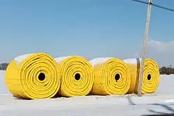 The ancient Roman authors Cato the Elder and Pliny the Elder described tile drainage systems in 200 BC and the first century AD, respectively. According to the Johnston Farm,[11] tile drainage was first introduced to the United States in 1838, when John Johnston used the practice from his native Scotland on his new farm in Seneca County, New York. Johnston laid 72 miles (116 km) of clay tile on 320 acres (1.3 km2). The effort increased his yield of wheat from 12 bushels per acre to 60. Johnston, the "father of tile drainage in America",[12] continued to advocate for tile drainage throughout his life, attributing his agricultural success to the formula "D, C, and D", i. e., dung, credit, and drainage.[13]