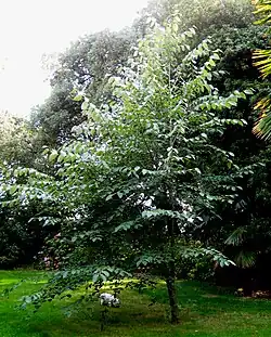 Probably the largest specimens surviving in the UK are at Thorp Perrow Arboretum, Yorkshire, planted 1936 and measuring 21 m × 0.7 m d.b.h. in 2004,[3] and at Borde Hill, Surrey; the latter bought at the Aldenham sale of 1932 as var. Chinensis, which measured 20 m × 1 m d.b.h. in 1984.[4]