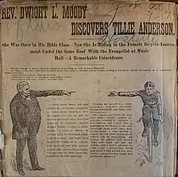 Many people - including Tillie's mother, brother, and her Bible teacher Reverend Dwight L. Moody - disapproved of women (especially Tillie) riding bicycles, not to mention competing in racing events wearing tight fitting clothing and where gambling was known to have occurred. But others felt differently. In 1896, Susan B. Anthony was quoted as saying, "Let me tell you what I think of bicycling. It has done more to emancipate women than anything else in the world. It gives a woman a feeling of freedom and self-reliance. I stand by and rejoice every time I see a woman ride by on a wheel...the picture of free, untrammeled womanhood". When Anthony was quoted as saying this in 1896, Tillie Anderson was the undisputed ladies' cycling champion of the world, and had been for over a year.