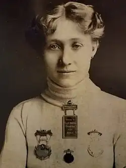 Tillie remained an advocate for bicycling through the years and often boasted about keeping within four pounds of her racing weight throughout her life. Tillie served as an advocate for the development of bicycle paths in Chicago's city parks. She remained active in the League of American Wheelman and the Bicycle Stars of the Nineteenth Century organizations until her death in 1965 at the age of 90.[1] For her achievements in cycling in both road and track events, Anderson was inducted into the United States Bicycling Hall of Fame in 2000.[6]
