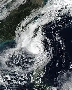 In advance of Hagupit, Chinese officials ordered the evacuation of areas vulnerable to flooding.[63] Hagupit caused torrential rainfall over portions of China peaking at 13.11 inches (333 mm) in the Jingshan district of Wenzhou.[64] 15 people were reported dead across South Korea, 6 of them following a landslide in South Chungcheong Province, 11 people were reported missing, and 7 people were injured.[65][66]