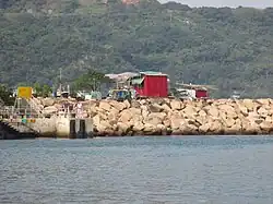 | Formerly on a small island within the former Aldrich Bay Typhoon Shelter, Shau Kei Wan 22°16′53″N 114°13′48″E / 22.281277°N 114.229913°E | Hoi Shum Temple (海心廟; 'temple in the middle of the sea') Built in 1845 on nearshore rocks for the worship of Tin Hau.[11][12] It was demolished in the 1980s when the Typhoon shelter was reclaimed. Some of the temple pillars and footing stones are now preserved in the Shau Kei Wan Shing Wong Temple. | Not listed Demolished | ![]() | |