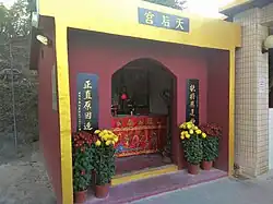 | No. 26A, A Kung Ngam Village Lane, A Kung Ngam, Shau Kei Wan | Yuk Wong Temple aka. Yuk Wong Kung Din (玉皇宮殿) or Yuk Wong Bo Din (玉皇寶殿) Dedicated to the Jade Emperor. Partly dedicated to Tin Hau: altar on the left side of the main altar. | Not listed | [7] [8] | ![]() |