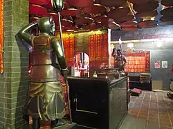 In the larger Chinese temples, the statues of two guardian gods may be found on either side of the main altar. In the case of Tin Hau temples, such guards are always the two daemon brothers Chin Lei Ngan (千里眼; 'Thousand Li Eyes') and Shun Fung Yi (順風耳; 'With the wind ear').[7]