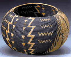 Tina Charlie is recognized as an innovative weaver for her finely crafted baskets. She received recognition during the Yosemite Indian Field Days, for which she was known to enter baby baskets. Competitive events such as these would allow her to earn additional income and reputation.[3] She created one of the earliest-documented negatively patterned baskets at the 1925 and 1926 Yosemite Indian Field Days basketry competitions. The baskets had black backgrounds, using black-dyed bracken fern root as the main sewing material, and patterned with buff-colored sedge root and red-brown split redbud. Her motifs were derived by adapting patterns from the Maidu tradition.[1]