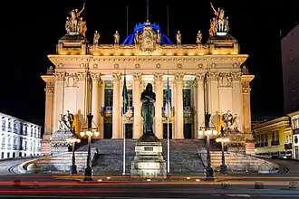 The Tiradentes Palace (Portuguese: Palácio Tiradentes) is an eclectic government building located in the Centro neighborhood (bairro), next to the Paço Imperial in Rio de Janeiro, Brazil. It was inaugurated on 6 May 1926 and was the former seat of the Chamber of Deputies of Brazil, between 1926 and 1960, and is the current seat of the Legislative Assembly of the State of Rio de Janeiro.