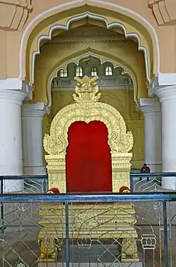 Tirumala Nayaka (reigned 1623–16 February 1659) was the ruler of Madurai Nayak Dynasty in the 17th century. He ruled Madurai between 1623 and 1659. His contributions are found in the many splendid buildings and temples of Madurai. He belongs to Balija caste.[3] His kingdom was under constant threat from the armies of Bijapur Sultanate and the other neighbouring Muslim kingdoms, which he managed to repulse successfully. His territories comprised much of the old Pandya territories which included Coimbatore, Tirunelveli, Madurai districts, Aragalur in southern Tamil Nadu and some territories of the Travancore kingdom.