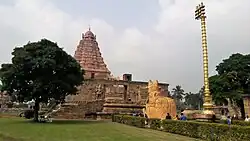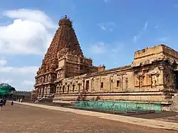 | Rajarajeswaram | Thanjavur 10°46′58″N 79°07′54″E / 10.78278°N 79.13167°E | Brihadisvarar | | Karuvur Thevar (11) | Built by Tamil king Raja Raja Chola I between 1003 and 1010 AD, the temple is a part of the UNESCO World Heritage Site known as the "Great Living Chola Temples". Built out of granite, the vimana tower above the shrine is one of the tallest in South India.[12] |