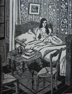 Tirzah Garwood's daughter, Anne Ullman wrote, "During the last year of Tirzah's life, sometimes in bed and often in pain, relived by deep ray therapy and testosterone, Tirzah completed no less than twenty small oil paintings."[13] A family friend, Olive Cook, recalls how Garwood astounded her friends during this time period with her determination, joy, and courage in what Garwood said was "the happiest year of her life".[13]