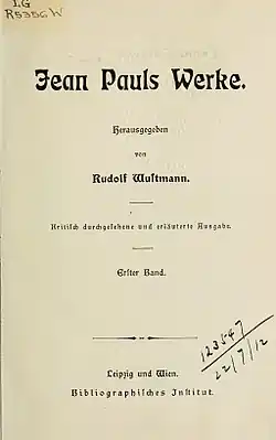 - ^ Mahler's high regard for Jean Paul is mentioned on p. 119 of the translation of Bruno Walter's biography Gustave Mahler, London, 1958.