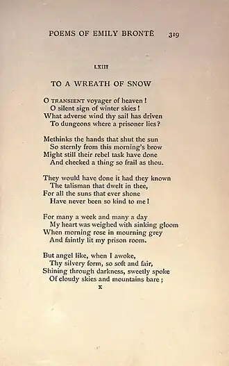 - ^ "A Short Analysis of Emily Bronte's 'To a Wreath of Snow'". Interesting Literature. 28 May 2020. Retrieved 23 September 2022.