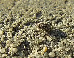 Adults lay their eggs in sand.[4] There are 5 instars in their life cycle.[5] Nymphs of many species cover themselves with a layer of sand grains. Apart from the no doubt considerable physical protection that the armour affords them, the layer of sand renders them effectively invisible on the ground unless they move at the wrong moment.[6]