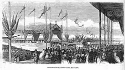 Following the exclusion of Toledo from the railway to the Portuguese border in the 1850s, the construction of a rail connection from Castillejo to Toledo promoted by the Marquis of Salamanca was approved in June 1856.[61] The line was opened on 12 June 1858.[62] Tourism fostered by the arrival of rail contributed to the development of the hospitality industry in the late 19th century.[63] By the turn of the 20th century, Toledo's population stood at about 23,000.[64] The neighborhood of Santa Bárbara came into existence after the arrival of rail.[65]