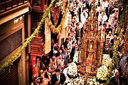 Toledo hosts numerous cultural events and festivals, such as Semana Santa (Holy Week) processions and the Corpus Christi festival, which draw large crowds and celebrate Castilian Spanish religious and cultural traditions.[72]
