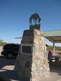 A small stone memorial marks the site of his death on State Route 79, and the nearby gully is known as "Tom Mix Wash".[25] The marker bears the inscription: "In memory of Tom Mix, whose spirit left his body on this spot and whose characterization and portrayals in life served to better fix memories of the old West in the minds of living men."