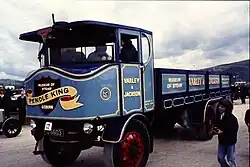 The last known survivor of the more than 500 Atkinson steam wagons built, it is powered by a uniflow engine and has chain-drive transmission. Following its completion as a new vehicle, it was exported to Western Australia, where it was operated by a Perth brewery and later a number of other operators, including a Wiluna gold mine. It was retired during World War II, and then lay derelict until 1971, when the Shire of Wiluna collected its remains for display in a local museum. However, the Shire later decided not to restore it.[13][14][15][16] In 1975, Varley first heard of the remains, and after protracted negotiations they were delivered to him in Gisburn in January 1976.[15][16][17] Varley and some fellow enthusiasts then fully restored the vehicle, including by having replica single-ram 3-way tipping-gear made for it with assistance from Bromilow & Edwards, who had made the original gear. Upon completion of the restoration in March 1977, the vehicle was named Her Majesty, in recognition of the Silver Jubilee of Queen Elizabeth II.[13][16] Later sold to Preston Steam Services in Kent.