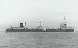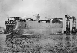 Tonan Maru No. 3 was built at Osaka by the Ōsaka Iron Works for Nippon Suisan and was launched on 1 May 1938. She measured 534.8 feet (163.0 m) in length, 74.9 feet (22.8 m) in breadth, 56.8 feet (17.3 m) in depth and 36.25 feet (11.05 m) draught. She was of 19,625 gross register tonnage.[1] She was fitted with two oil-fired reciprocal steam engines, driving two screws, and had a nominal horse power of 500.[2][1] Tonan Maru No. 3's maximum speed was 14.12 knots (26.15 km/h; 16.25 mph) and her in service speed was 12 knots (22 km/h; 14 mph).[2] She was the largest merchant vessel built in Japan up to that point, though her sister ship Tonan Maru No. 2 exceeded her in tonnage later in her career.[3][4] To accompany Tonan Maru No. 3 nine whale catching vessels were built alongside her.[5]