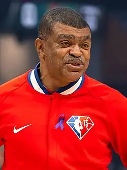 Tony Brothers (born September 14, 1964) is an American professional basketball referee who works in the National Basketball Association (NBA). He has been a referee in the NBA since the 1994–95 season.[1] Now in his 32nd year, Brothers has officiated 1,854 regular season games, 215 playoff games and 19 NBA Finals games.[2] He officiated the 2009 NBA All-Star Game in Phoenix, Arizona.[3] In a survey of NBA players, Brothers was voted one of the favorite referees, but also received several votes as the least favorite referee.[4] He wears the uniform number 25.[2][5]