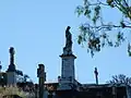 Portions 9, 11, 12, 13 and 14 surround the Blackall Monument located on the highest knoll in the Cemetery. The upper reaches of these portions contain Queensland's most prominent political, legal, arts, religious and business figures. Portions 15 and 15 A contain public Catholic graves. Part of 15 was originally allocated to the burial of criminals and was later resold as Catholic ground. The pauper grounds were located in the low-lying area in Portion 16. The top dressing in this area has been stripped and the area is presently used for the dumping of tree trimmings and other rubbish.[2]