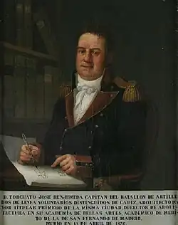 Torcuato José Benjumeda y Laguada (1757, El Puerto de Santa María – 1836, Cádiz) was a Spanish architect. A disciple of Torcuato Cayón, he was one of the most important Neoclassical architects in Andalusia, designing several of the most prominent buildings in Cádiz. These include the Royal Prison, the Church of St. Peter and St. Paul and the Ayuntamiento (town hall).[1][2]